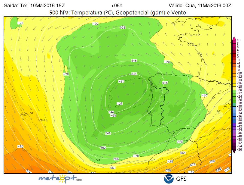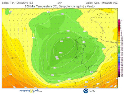 frio (20 a 25 ºC negativos aos 500 hPa, sensivelmente a 5500 metros de altitude,