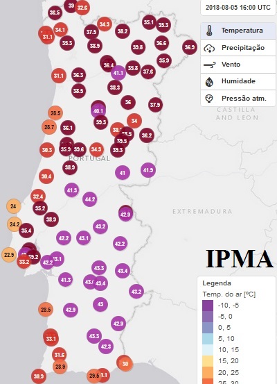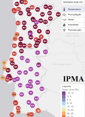 máximas de 35ºC na generalidade do território, com valores superiores a 40ºC no